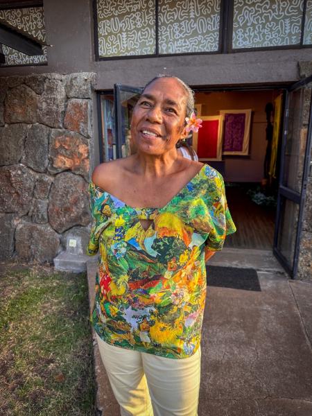 El pasado 21 de enero, la Sala de Exposiciones Temporales del Mapse Museo Rapa Nui se vistió de colores y tradición con la inauguración de la esperada exposición de Ani de la Puente Hey, titulada "Ero-ero o te Moana Nui a Kiva, Ecos del Pacífico Sur". Esta exposición, que celebra más de treinta años de dedicación de Ani al arte ancestral del teñido y la pintura en pareos, representa un testimonio visual cautivador inspirado en los ecos, visiones y sueños que nacen en Rapa Nui y se aventuran por el vasto Pacífico Sur. Cada obra exhibida es el fruto de la fusión de técnicas tradicionales de la Polinesia con la creatividad única de la artista. Ani de la Puente Hey a través de su trabajo logra plasmar su identidad y creatividad en cada lienzo, fusionando diversas técnicas y estilos que evocan la naturaleza, el sol, el mar, el viento y las figuras sagradas de la cultura rapa nui.
