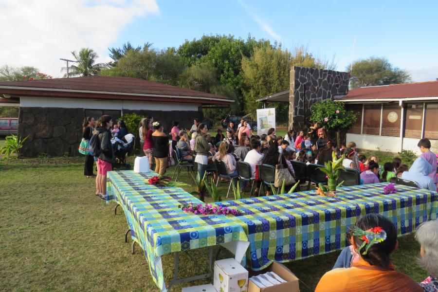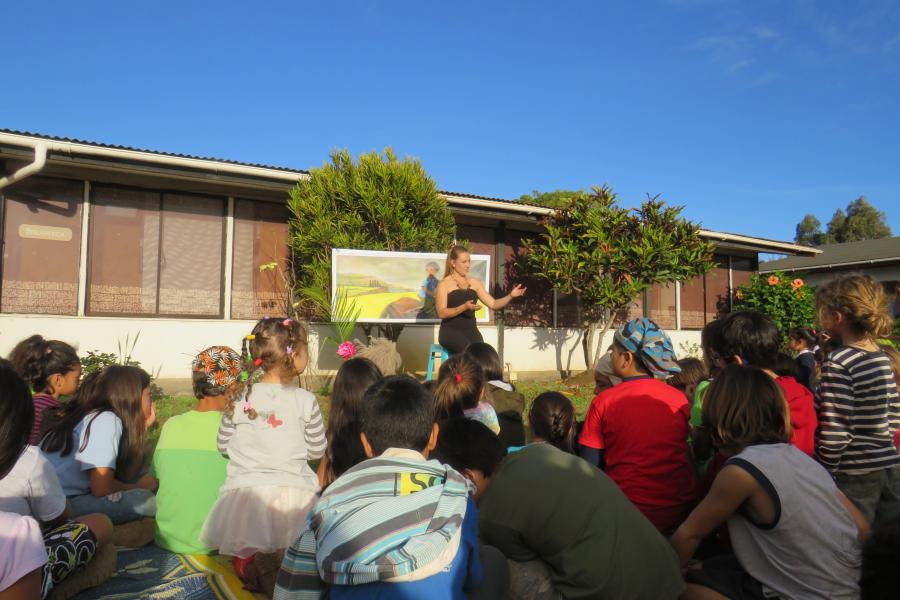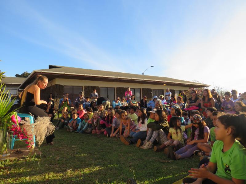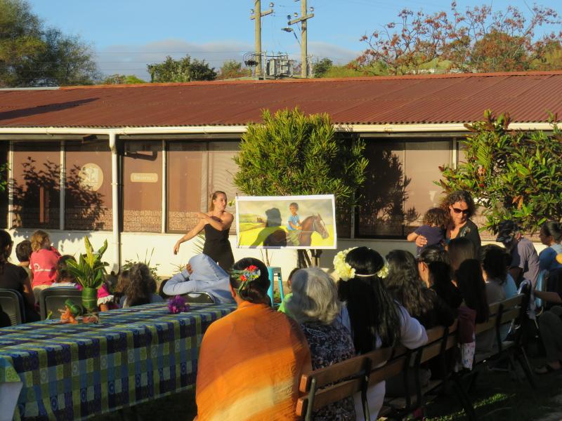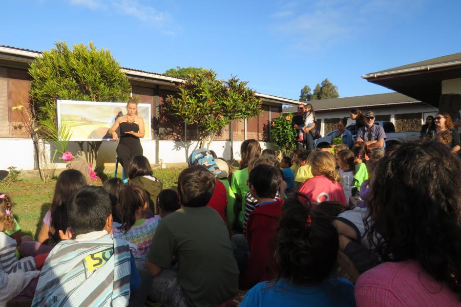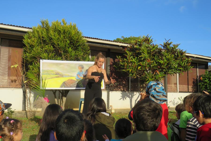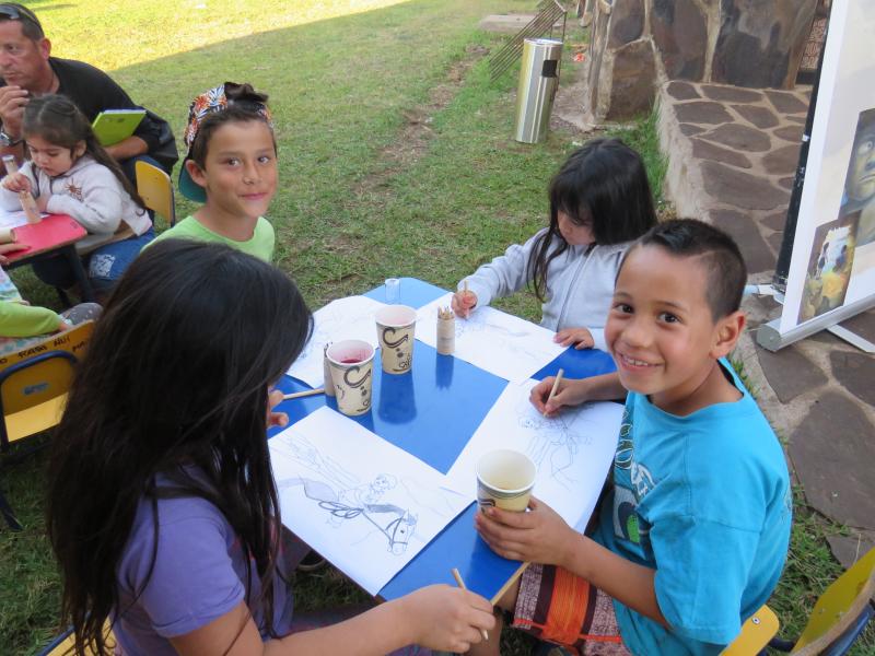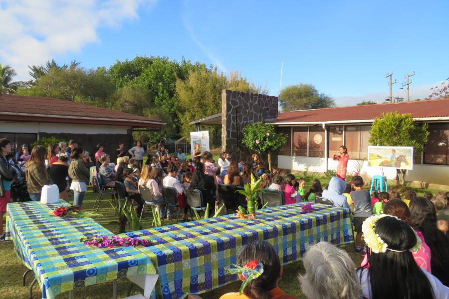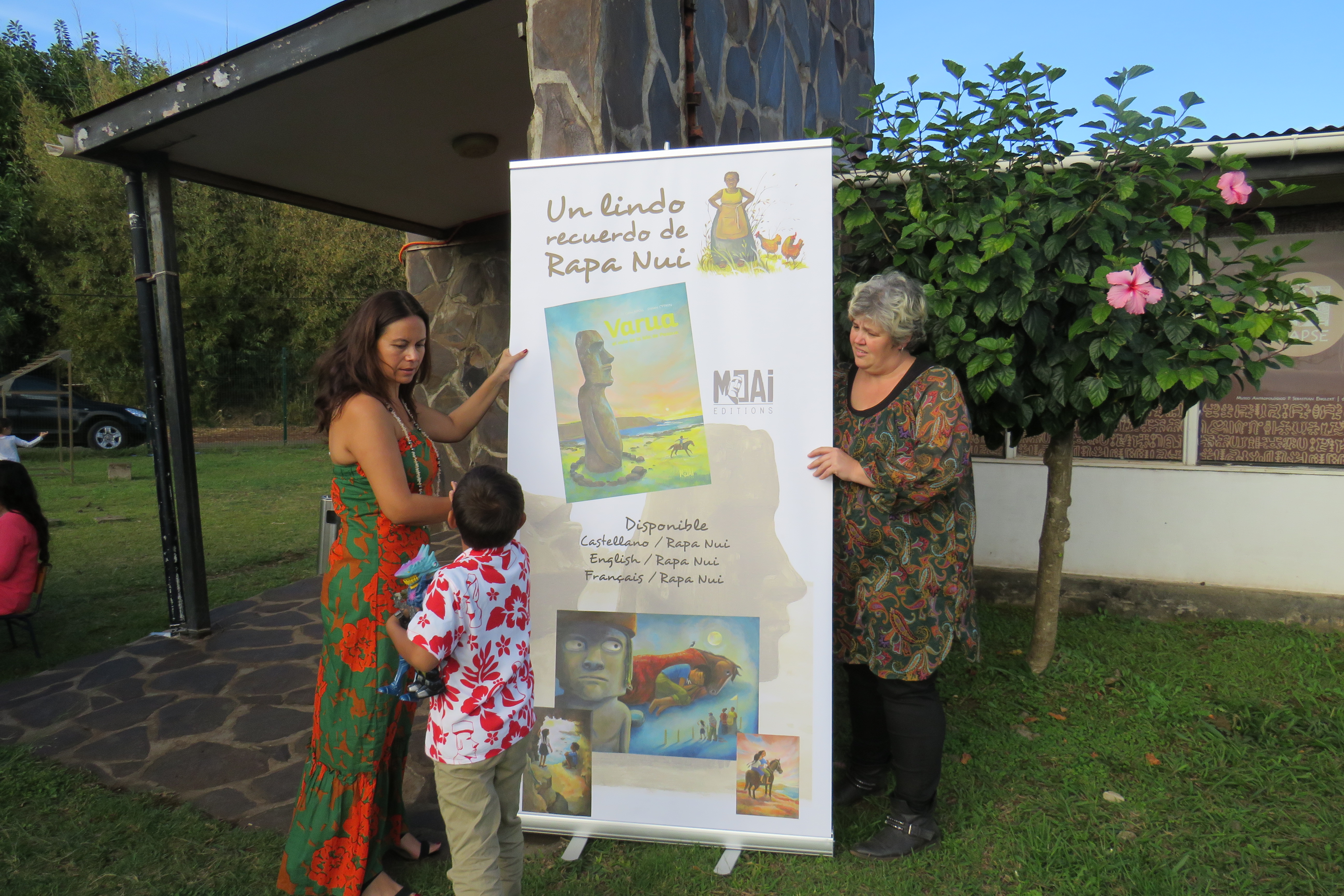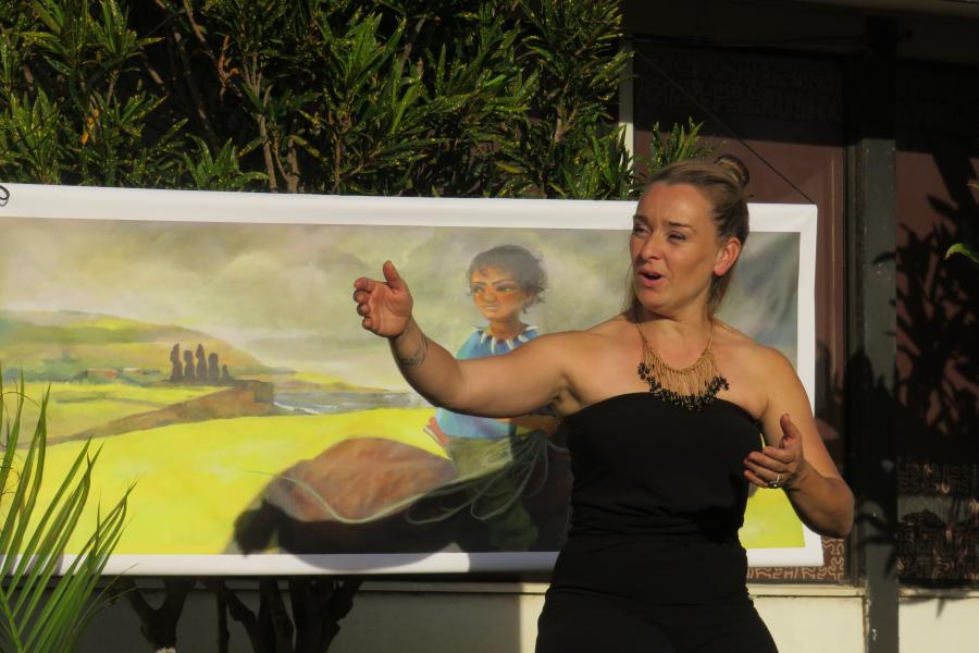Celline Ripoll, escritora francesa, con más de diez publicaciones y narradora especializada en cuentos del Pacífico, quiso realizar en el Museo una actividad dirigida a todas las familias de la isla, aprovechando de presentar .