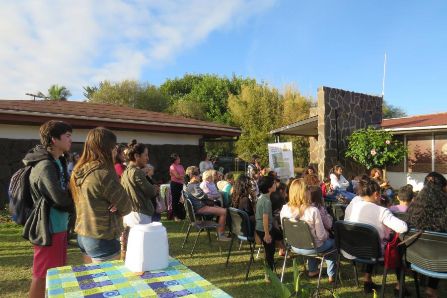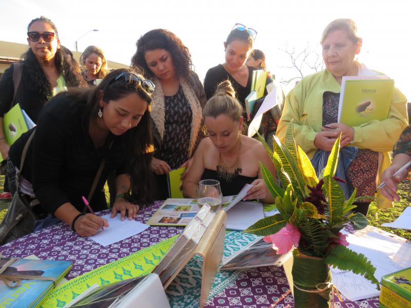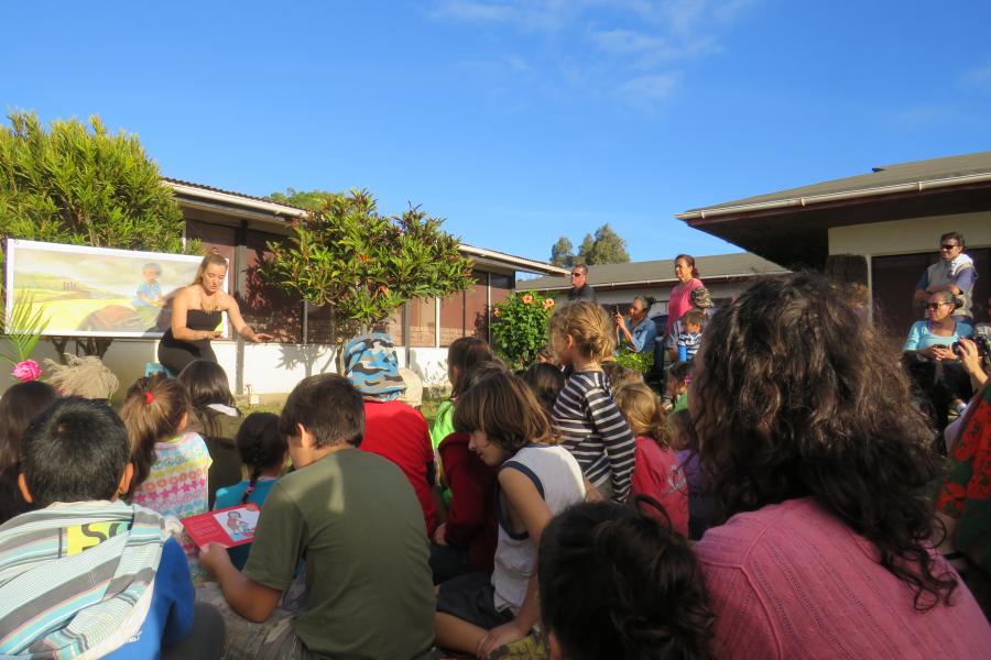 En esta oportunidad, la escritora realizó un Cuenta Cuentos, donde narró esta historia inspirada en la vida de su marido Rapanui.