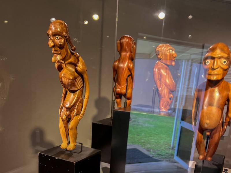 15 fueron las piezas tallas y entre ellas figuras de aspectos naturalistas talladas en madera de mako’i, accesorios ornamentales y decorativos. En esta exposición podrán ver Mōai Kava-kava, Mōai Taŋata, Mōai Pa'a-pa'a y entre otras figuras. El objetivo de este trabajo es poder volver a apreciar figuras de la cultura rapa nui, sus diferentes formas y estilos, y dar a conocer en donde se encuentran actualmente.