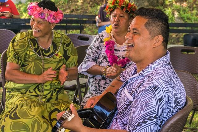 La ceremonia de inauguración se inició con las palabras de bienvenida de Marlene Hernández, Encargada del Área de Extensión del Museo Rapa Nui. Luego se dirigieron al público Paula Valenzuela, Directora del Museo Rapa Nui; Susana Canales, Directora Subrogante de DIDECO de la Ilustre Municipalidad de Isla de Pascua; Luisa Pont, Encargada de las actividades recreativas del Centro del Adulto Mayor CAM; Mariana Moreno, Profesora del taller y, cerrando los discursos, uno de los expositores, Francisco Lazo. La ceremonia, a la que acudieron alrededor de ciento cincuenta personas, concluyó con un regalo del chelista rapanui Carlos Rodríguez Teao, quien nos deleitó con tres piezas musicales, entre ellas la popular Ka Reva Nei, que fue coreada por todos los asistentes. Finalmente, la exhibición fue bendecida con el tradicional Umu, acompañado por cantos y rezos, luego del cual los asistentes pudieron recorrer la muestra.