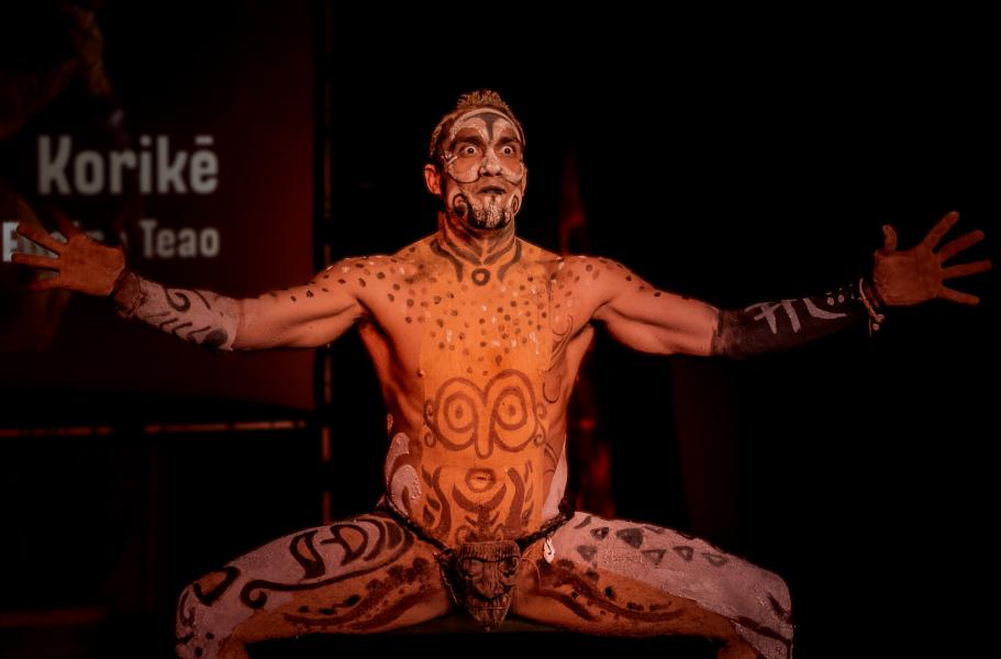 Haukena Ika Mella, con su obra Mōai Hinariru, destacó por una pintura corporal de alto contraste y una ejecución precisa del color.