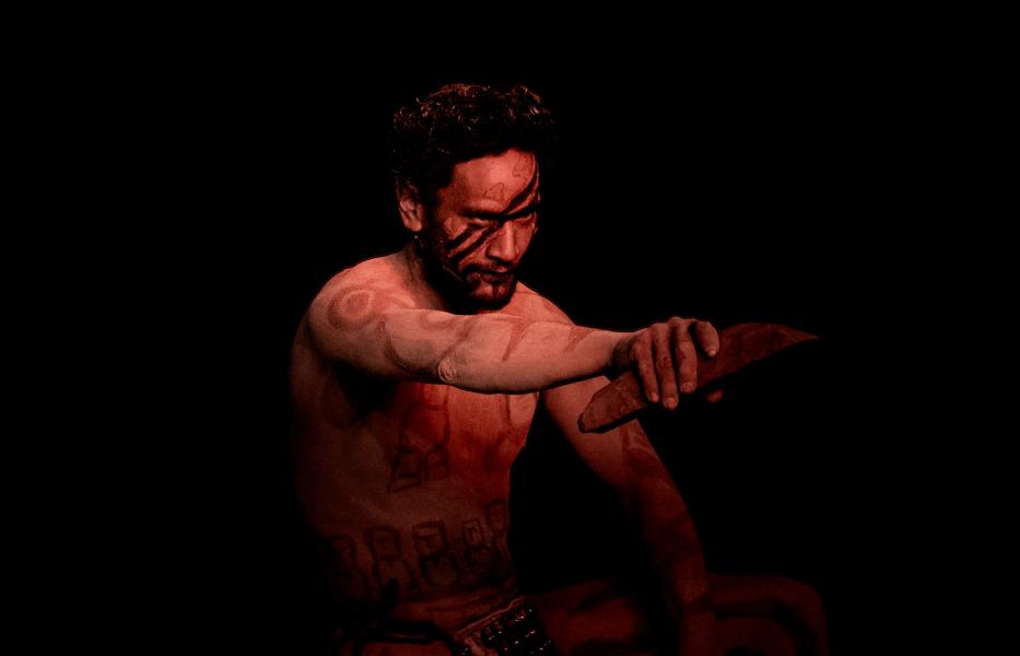 Korikē Encina, quien encarnó al dios Make-Make, figura central de la cosmogonía rapa nui, con fuerza ritual y presencia escénica.