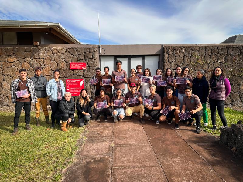 El día miércoles 28 de junio, se realizó en el Patio de los Ceibos del Mapse Museo Rapa Nui, la ceremonia de finalización de los talleres de formación de guías de la exposición permanente, junto a los alumnos y alumnas de 4to medio Turismo, del Liceo Aldea Educativa Hōŋa'a o te Mana. El objetivo de estos talleres es capacitar a jovenes a partir de los contenidos expositivos del museo con el fin de que ellos puedan realizar visitas guiadas programadas a los usuarios que recibe el museo. Acercar las colecciones del museo a estudiantes de educación media de la comunidad. Fomentar el interés por la investigación del patrimonio e historia rapa nui. Educar acerca del trabajo de protección y difusión del patrimonio que realiza el museo